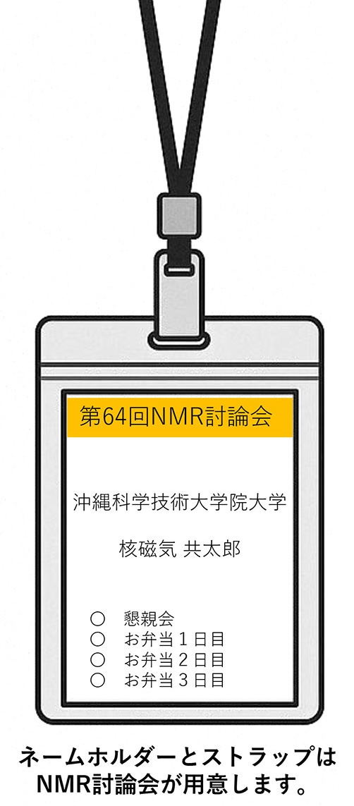 - 日本核磁気共鳴学会の本年度の学会費を未納の場合は、ミーティング・ルーム棟にある日本核磁気共鳴学会デスクでお支払ください。
