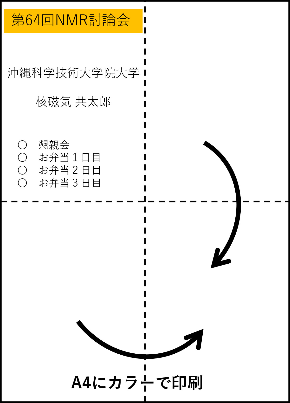 ネームホルダー(A4四つ折り対応サイズ)は当日会場にてご用意いたします。 - カンファレンスバッグ:OISTカンファレンス・センターで配布します。中にはネームホルダー、ネックストラップ、広告などが入っていますので、一人一つずつお取りください。